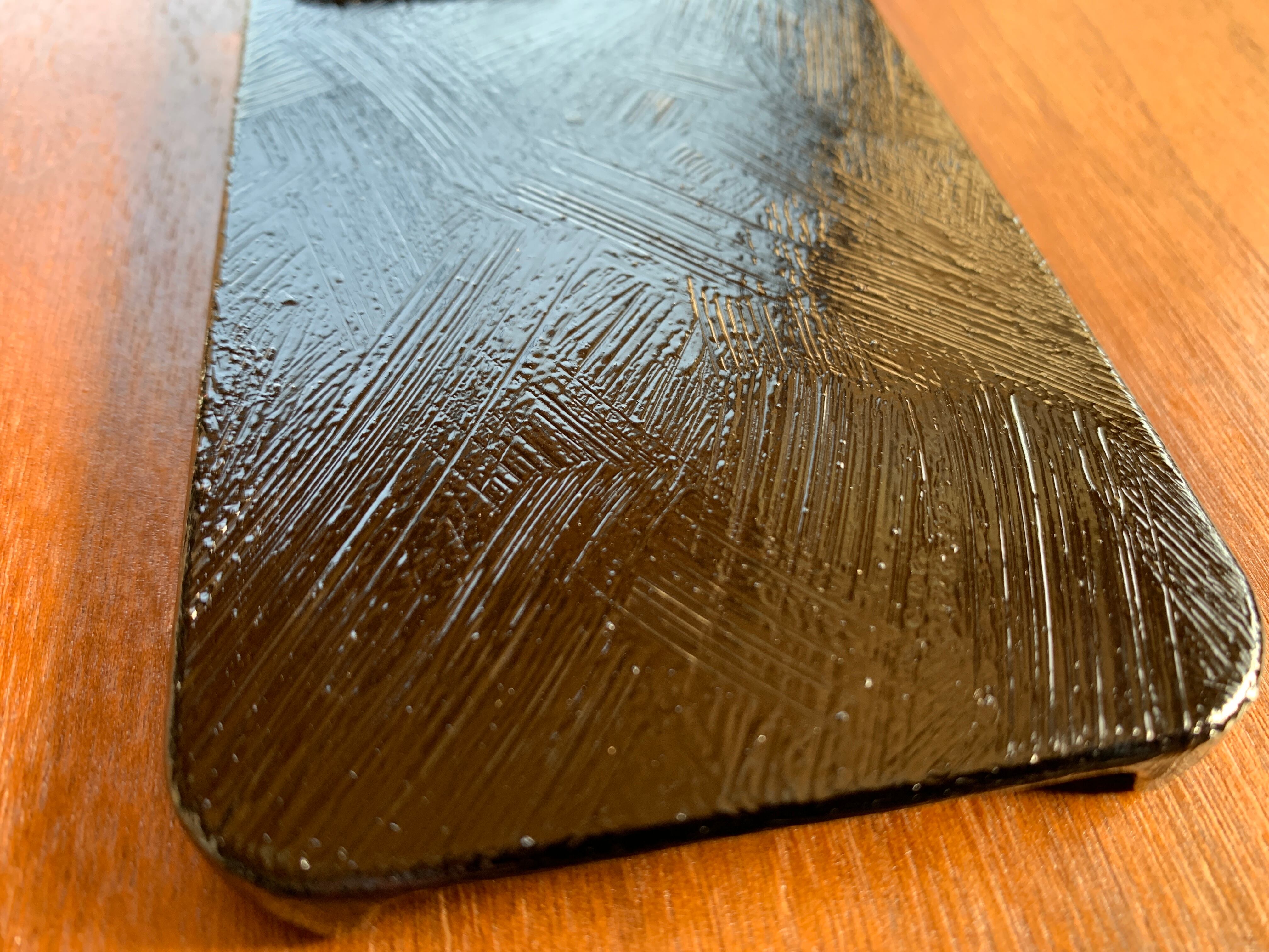粘り気のある漆黒の絞漆を使い、表面に筋状の刷毛の跡をつけました。